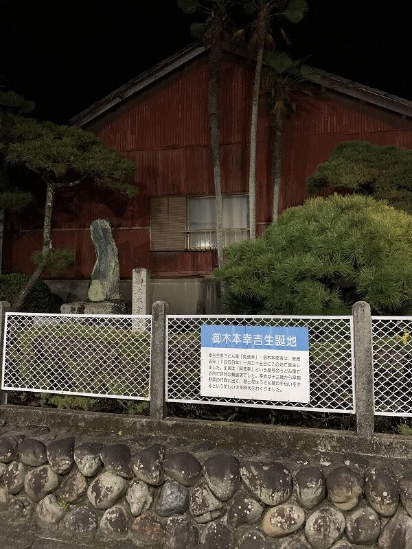 12月19日13時過ぎ、三崎さんの運転で金沢を出発。19時前に鳥羽に到着するも殆どの飲食店が営業時間外で、路地で迷い込むように見つけたとんかつ屋さんへ。三重は赤みそ文化なので、とんかつは味噌だれ。わたしの日替わり定食も美味しかったが、赤みそで育ってきたわたしはふたりのとんかつ定食に羨望のまなざしを向けていた。おなかいっぱいになってお店を出ると、向かいは世界ではじめて真珠養殖を成功させた、ミキモトの創業者・御木本幸吉の生家跡だった。真珠ツアーはすでにはじまっていた。