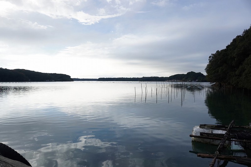 夕方16時頃作業終了。その日はなんと1万個もの貝を剥いたそうだ。半日だけ、ほんの少し作業に加わらせていただいただけだが、ものすごい達成感と心地よい疲労感。Yさんをはじめ、終始みなさんはわたしたちを温かく迎えてくださった。作業中に交わされる他愛ないおしゃべりや笑い声。真珠養殖にはこうしたひとのぬくもりもが宿っていることを実感した時間だった。その日は冬至でちょうど新月でもあった。養殖所から眺める海はすっかり凪いでいて、穏やかだった。