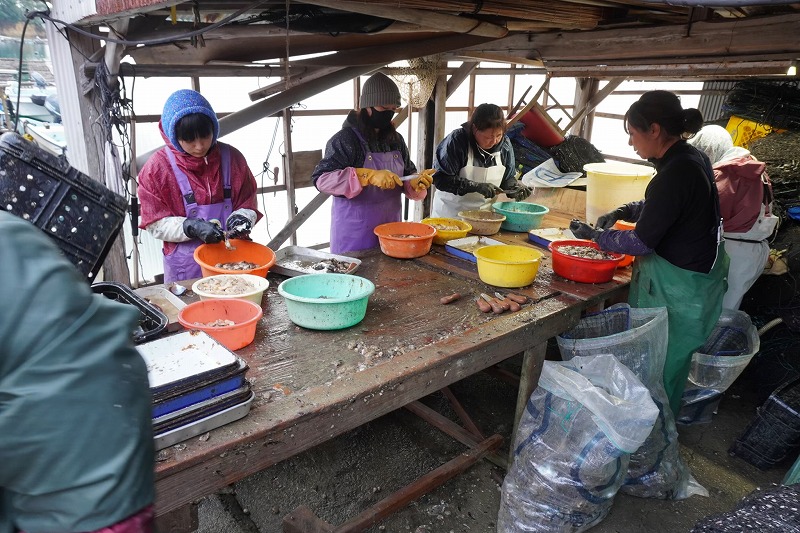 白鷺美術での夜のあと、久しぶりにYさんに連絡を取ったーー「今の時期は貝の掃除だけで、次の見どころは12月後半の貝剥き、それが終わるとしばらく仕事は休みに入ります。こちらはだいたいいつでも大丈夫ですよ。」。足手まといにならければ三人で貝剥きに参加したい旨をお伝えし、12月下旬に養殖所へ伺うことになった。